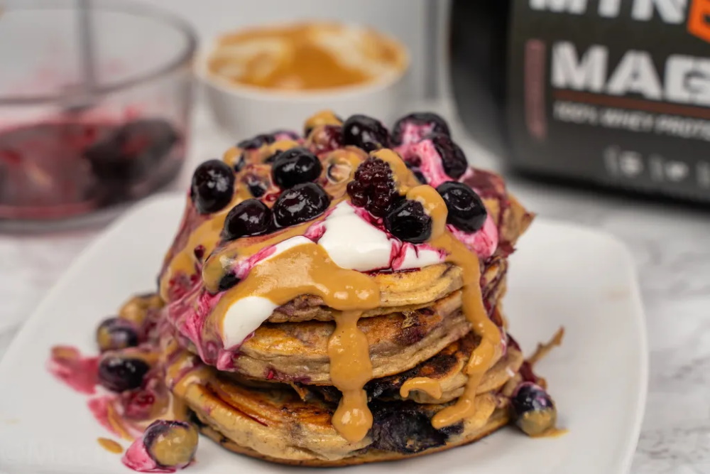 4. Berry coulis covered pancakes