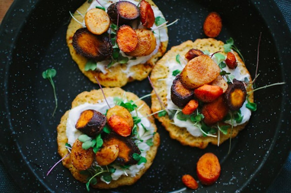 Who says you have to eat pancakes for breakfast or with syrup? This food doesn’t necessarily have to be sweet. You can top it with things like corn, sausage, cheddar or prosciutto and even a spicy salad like arugula. Or do a scrumptious take on a bacon egg and cheese by sprinkling some cheese on top and adding a fried egg topped off by crispy bacon?
