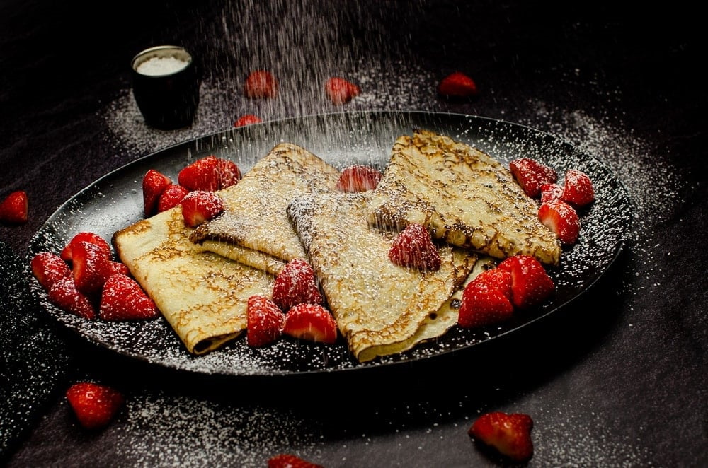 Thinner than regular pancakes and thicker than French crepes, British pancakes only require a few ingredients and are much less dense, which people prefer. There is no raising agent used in these, so they’re instead best served with sugar and lemon juice or maybe Nutella and fruit.