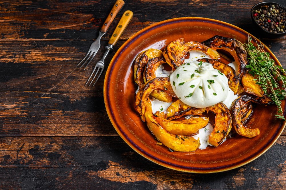 6. Roasted Acorn Squash with Burrata, Topped with Garlic Butter