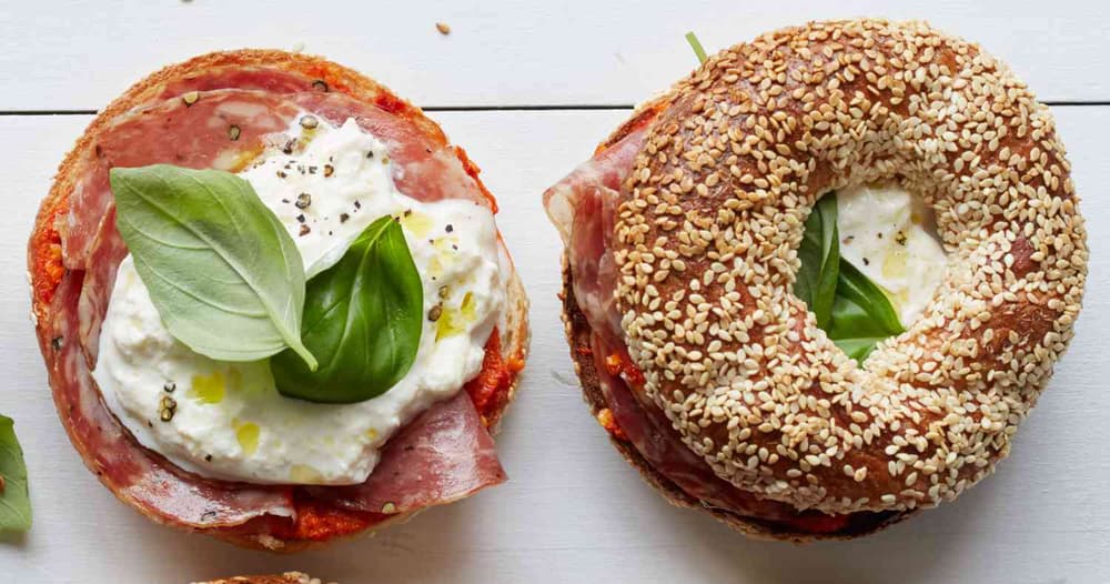 9. Sesame Bagels Topped With Burrata and Soppressata