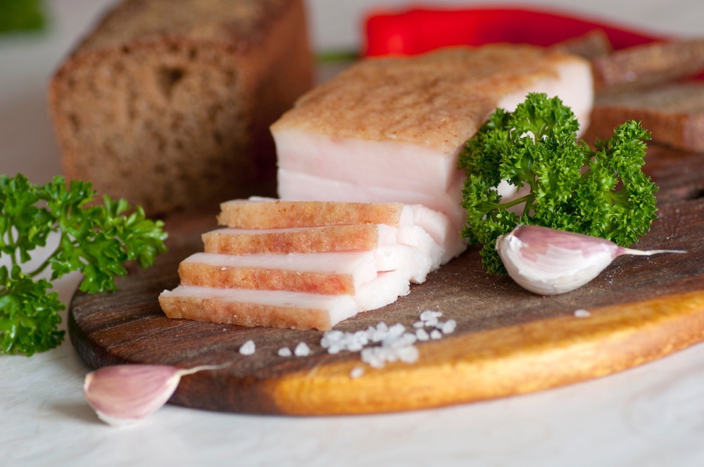 Salo is cured of slabs of fatback with or without skin. It usually contains mostly fat and little to no meat. It can be dry-salted or smoked, with the addition of spices depending on the region where it’s made. Salo is usually served cut into thin slices.