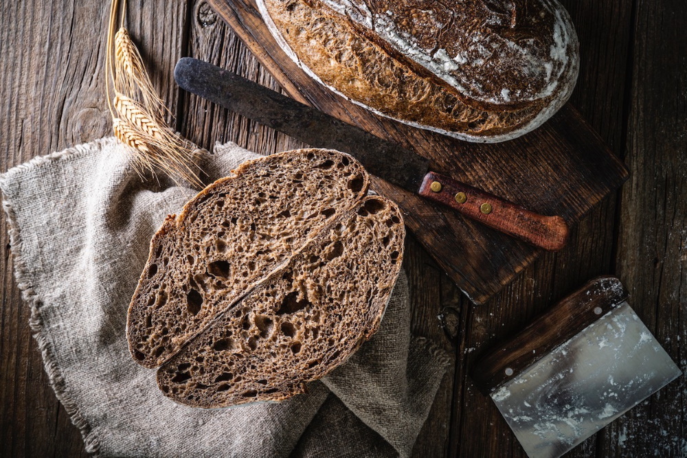 This dark loaf of bread is made of rye flour or a mix of different flours and sourdough starter. This bread is denser than white yeasted bread, but it’s also moister, richer in taste, more aromatic, and lasts longer. Caraway seeds are often added to the dough which adds to the taste and aroma.