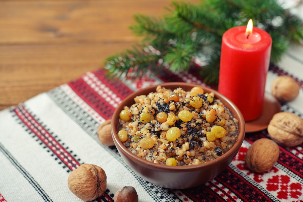 Kutya is a holiday dish made specifically for Christmas in Ukraine. It’s a kind of grain pudding made with wheat grain, poppy seeds, nuts, and dried fruit (usually raisins) and sweetened with honey. It’s traditionally the very first thing you eat to start your Christmas dinner of 12 dishes.