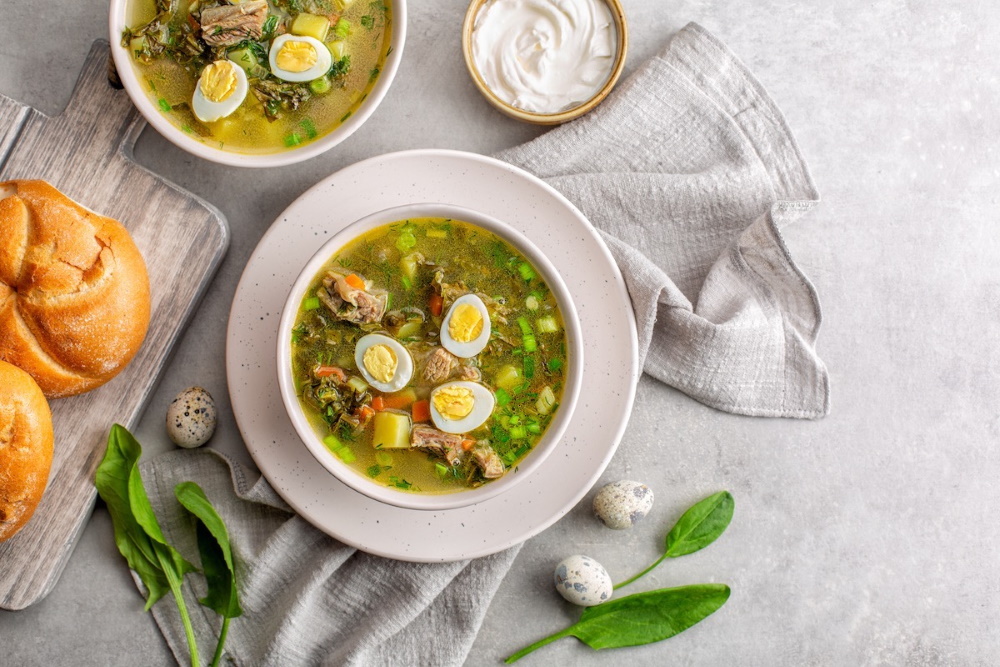Sorrel soup is a slightly sour-tasting soup that’s also popular in Ukraine. It’s basically a vegetable broth with cubed veggies like potatoes, carrots, and leafy greens (usually lots of sorrel, which gives the soup its signature taste). Eggs are also added to the soup. Some choose to simply crack the eggs into the soup as it’s cooking, creating swirls of eggs, while others prefer to add hard-boiled eggs once the soup is already cooked.