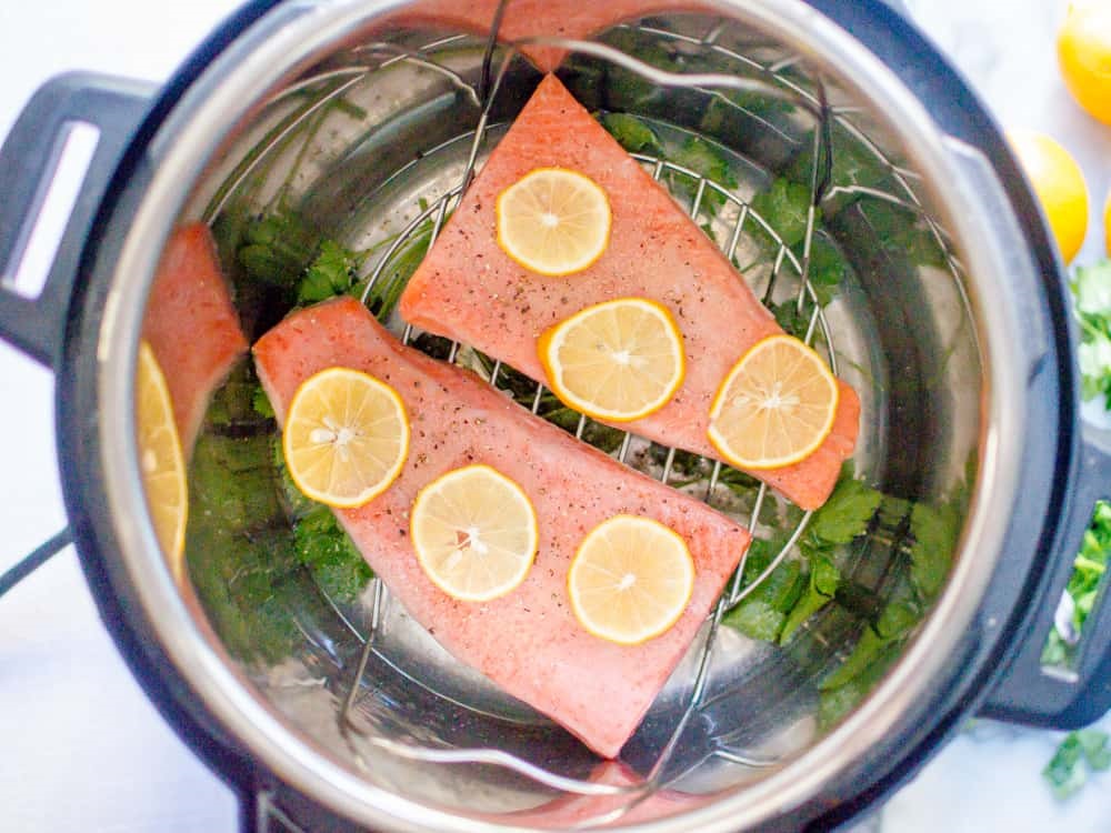 Lo mejor es cocinar los frutos del mar en la cesta vaporera que seguramente trajo tu olla rápida como accesorio, con al menos 3/4 de taza de líquido. Engrasa la cesta con aceite vegetal antes de colocar el pescado.