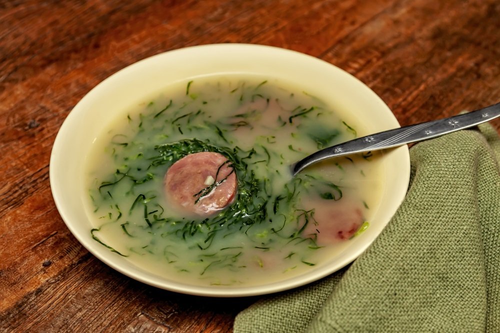 Una sopa tradicional elaborada con papas, col rizada, cebolla y chorizo (linguiça). Es simple pero reconfortante, y se sirve frecuentemente en celebraciones.