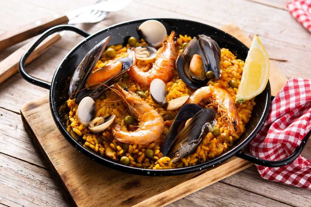 Similar a la paella, este plato de arroz es cocido con una mezcla de mariscos como camarones, almejas, mejillones, y cangrejo, sazonado con ajo, perejil, y tomates.
