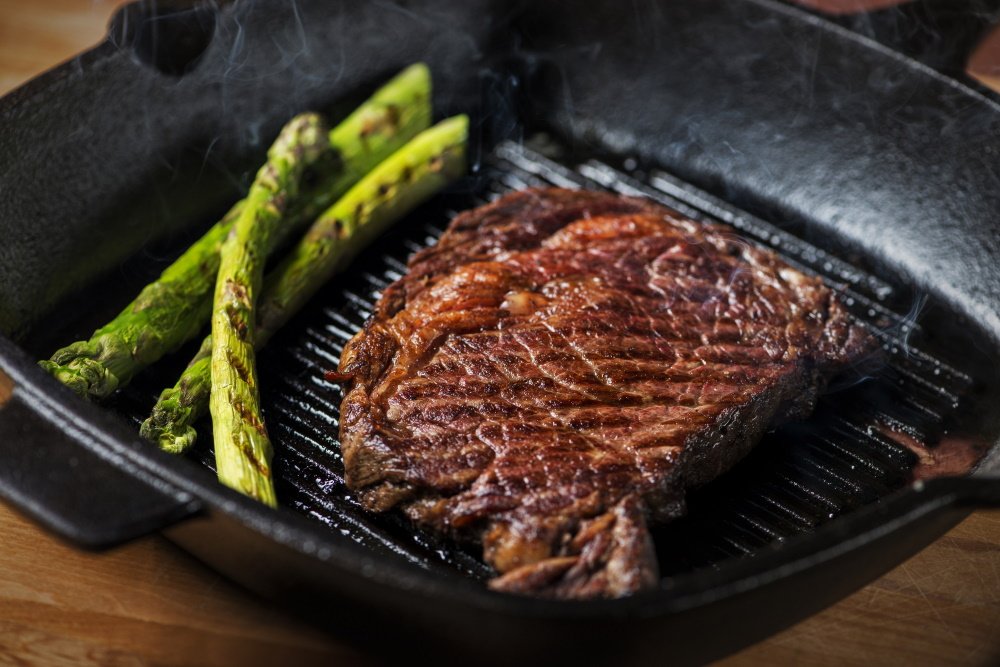 – Calienta la sartén a fuego alto durante unos minutos hasta que esté muy caliente. Debe estar lo suficientemente caliente para que el ribeye haga un buen sonido al entrar en contacto con la sartén.