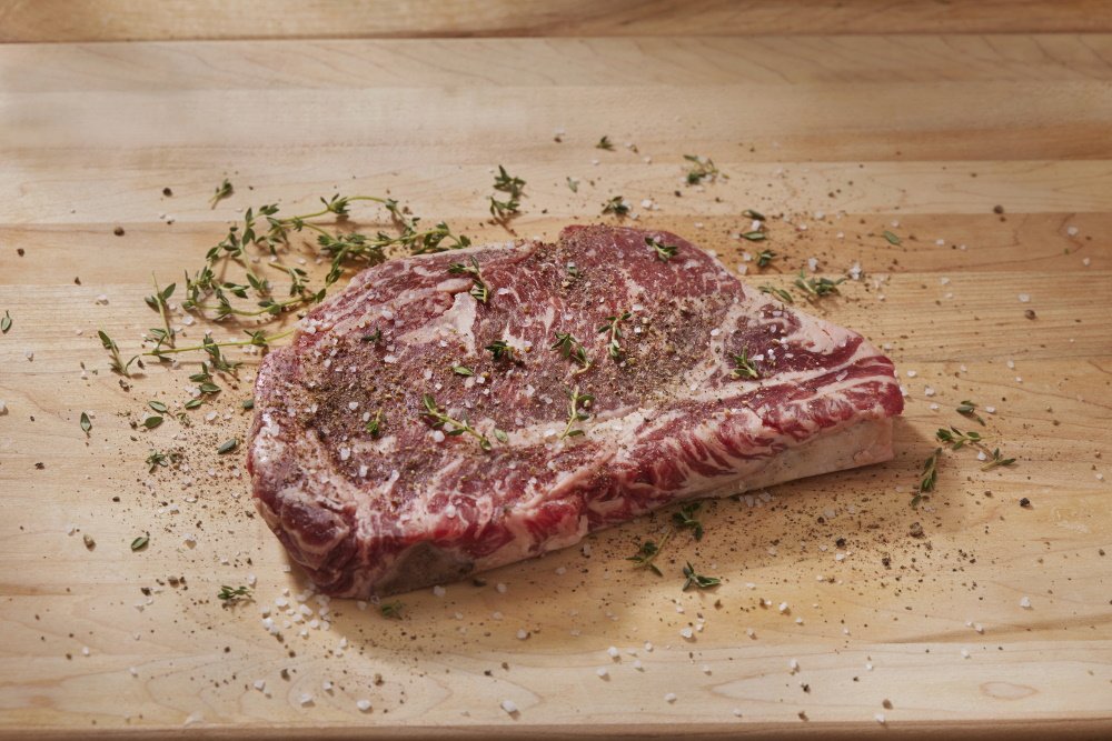 – Frota ambos lados del ribeye con sal gruesa y pimienta negra recién molida. Puedes agregar otros condimentos de tu elección, como ajo picado o hierbas frescas (romero o tomillo) si lo deseas.