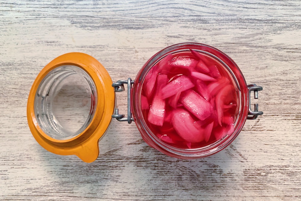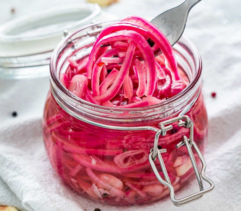 Esta receta de cebolla encurtida se puede utilizar en gran cantidad de recetas, desde ensaladas hasta tacos, pasando por pinchos, tostadas o incluso bocadillos y hamburguesas. Además, si se utiliza cebolla morada, aportará un precioso colorido a los platos que hará las delicias de los paladares más exigentes.