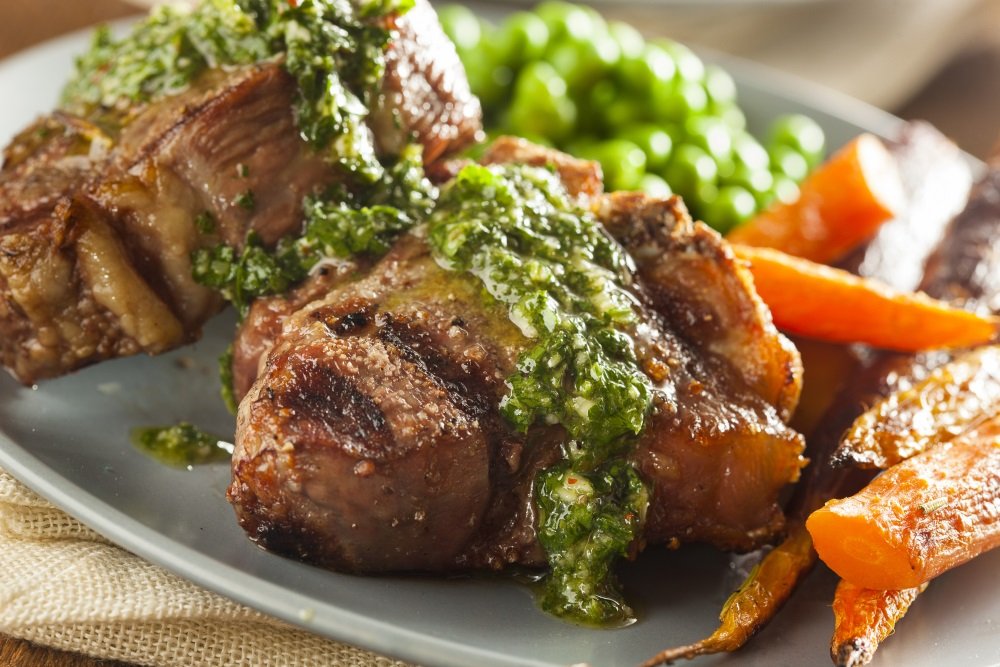 El chimichurri se puede servir a temperatura ambiente. Es ideal para acompañar carnes asadas, pollo, pescado, o incluso para marinar verduras. Se puede almacenar en el refrigerador en un frasco hermético por hasta una semana.