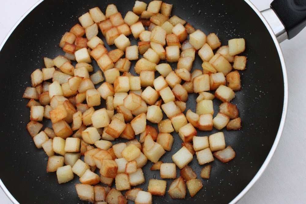 - Fríe las papas: En una sartén con abundante aceite de oliva caliente, fríe las papas hasta que estén doradas y crujientes. Sácalas y colócalas sobre papel absorbente. Añade sal al gusto.
