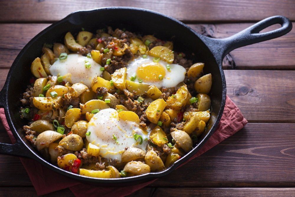 - Fríe los huevos: En una sartén aparte, fríe los huevos con puntilla (la clara crujiente en los bordes), dejando la yema líquida para mezclar con las papas.