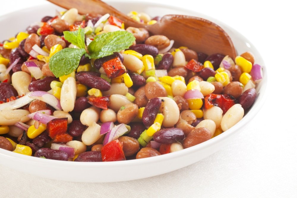 ¡Una ensalada de frijoles densa y deliciosa es perfecta para saciar el hambre y llenarte de nutrientes! Aquí tienes una receta completa y equilibrada: