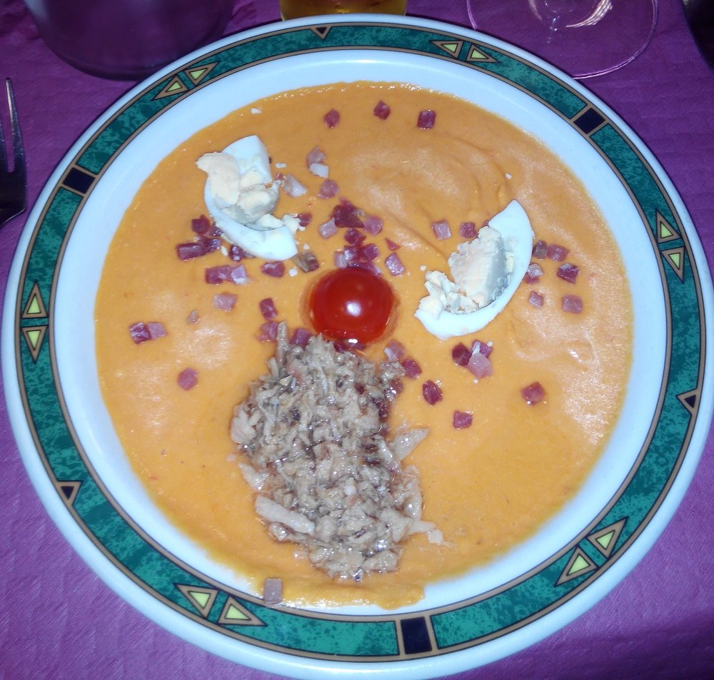La porra antequerana es un plato sabroso y fresco que se convierte en un perfecto entrante de cualquier menú. Se suele servir con un chorrito de aceite de oliva virgen extra y con huevo duro picado, jamón en taquitos o tiras o láminas de atún al natural. Mucha gente también decide mezclar el huevo tanto con el atún como con el jamón, quedando un plato no solo delicioso, sino también muy nutritivo y saciante.