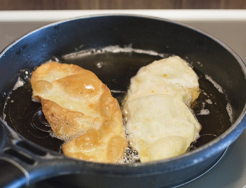 9. Calienta abundante aceite en una sartén a fuego medio-alto. Cuando el aceite esté caliente, fríe las orejas de carnaval por ambos lados hasta que estén doradas y crujientes.