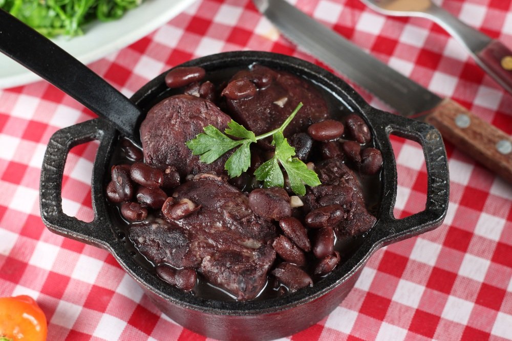 This rich, smoky black bean stew with pork cuts and sausage is Brazil’s national comfort food. Served with rice, greens, and orange slices, it’s slow food that brings people together — especially on Sundays.