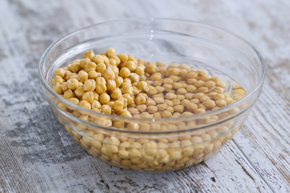 a. Overnight Soak: Place the sorted and rinsed chickpeas in a large bowl and cover them with enough water to submerge them completely. Let them soak for at least 8 hours or overnight.