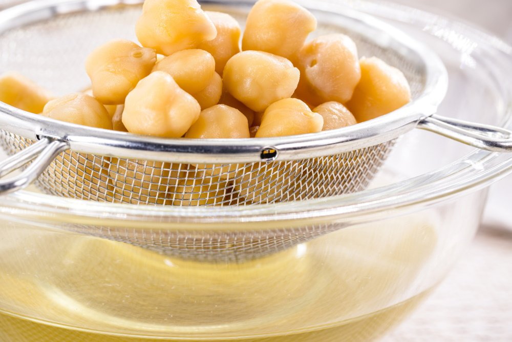 After soaking, drain the chickpeas and rinse them again under cold water.