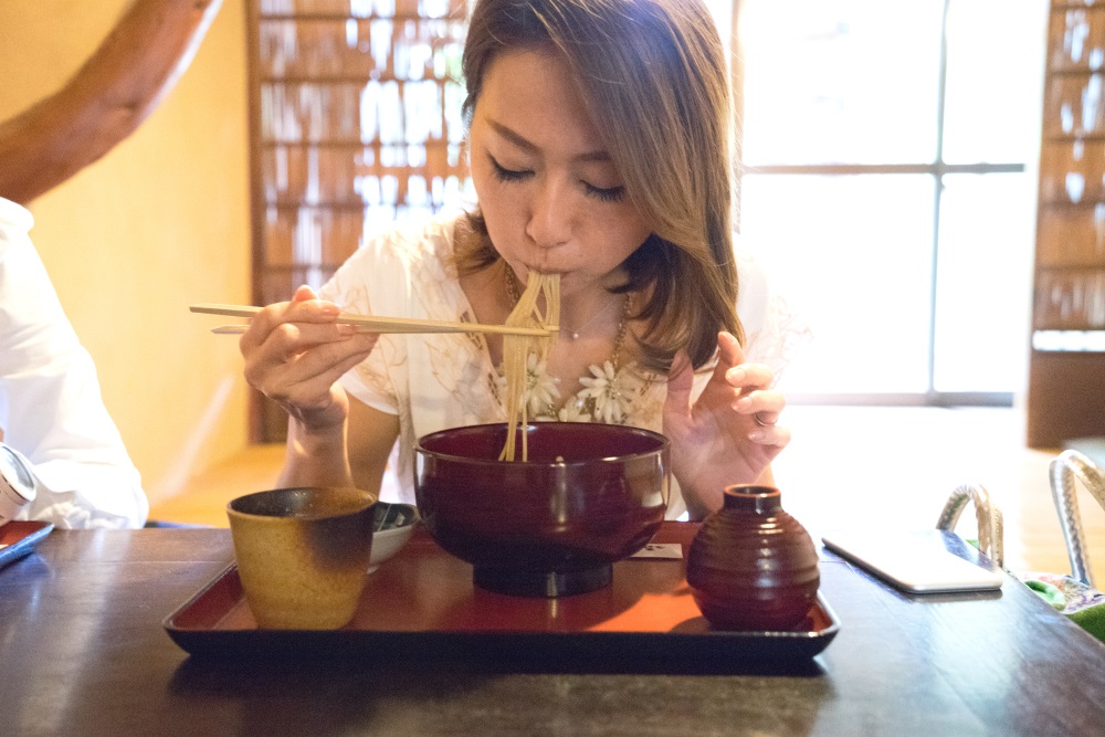 This step is by far the most fun. Once your perfect bite is gathered, move your head closer to your bowl to get a mouthful with less spillage. Shape your lips as though you’re going to sip a hot beverage. Bring both the chopsticks and spoon to your mouth and get to slurping! The louder and quicker you are, the more effective it’ll be. Slurping is also an effective way to consume foods like ramen which are at a higher temperature.