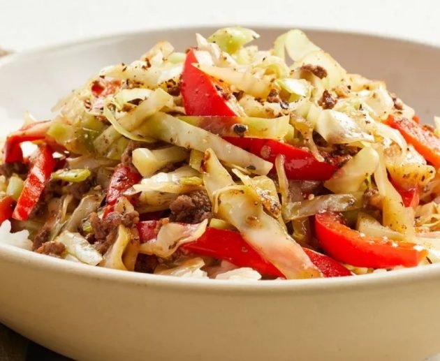 Chinese fried beef with cabbage